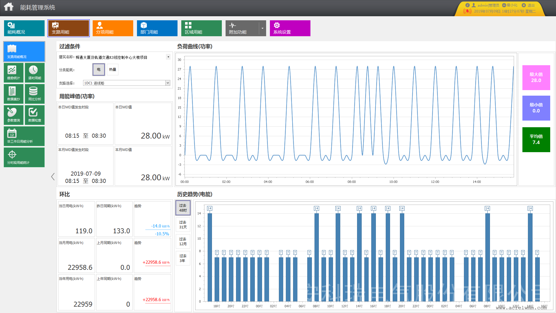 可灵活选择支路,并统计某段时间内支路用能的日、月、周、季、年用能;