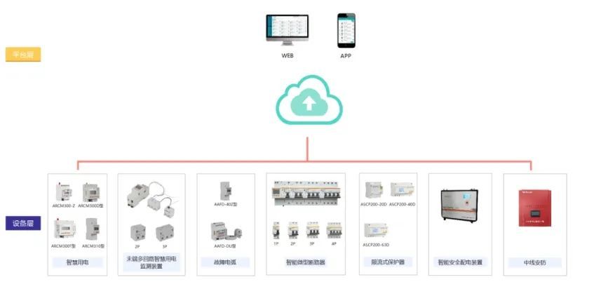 安科瑞建筑末端配电解决方案基于物联网技术,构建了 “云 - 边 - 端” 协同的智能配电系统。在 “端” 侧,部署智能断路器、多功能电表、电气火灾探测器等智能终端设备,实时采集配电系统的电流、电压、温度、漏电等关键数据;“边” 侧通过边缘计算网关对采集的数据进行初步处理与分析,实现本地数据存储和逻辑控制;“云” 侧依托安科瑞能源管理云平台,对数据进行深度挖掘与分析,提供远程监控、故障预警、能耗分析、报表生成等功能,实现对建筑末端配电系统的全生命周期管理。
