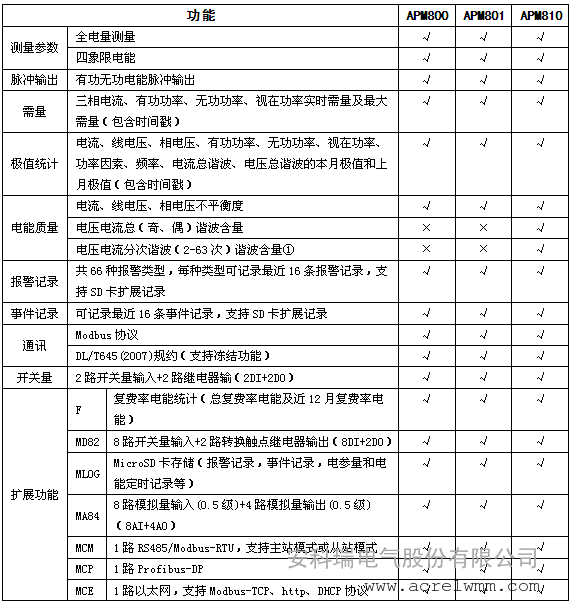 APM系列网络电力仪表按IEC标准设计,具有全电量测量,电能统计,电能质量分析及网络通讯等功能,主要用于对电网供电质量的综合监控诊断及电能管理。该系列仪表采用了模块化设计,当客户需要增加开关量输入输出,模拟量输入输出,SD卡记录,以太网通讯时,只需在背部插入对应模块即可。
