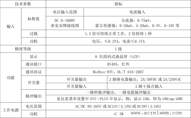 仪表可具有红外通讯接口和RS-485通讯接口,同时支持Modbus-RTU协议和DLT645-97(07)协议;可带继电器报警输出和开关量输入功能;根据不同要求,通过仪表面板按键,对变比、报警、通讯进行设置;具有开关量事件记录(Modbus协议)、编程和事件设置记录(645协议)、数据瞬时和定时冻结功能(645协议)、电压电流功率*大值、*小值记录功能。